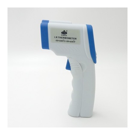 Thermomètre infrarouge à visée laser avec sacoche de transport et boîte accrochable.