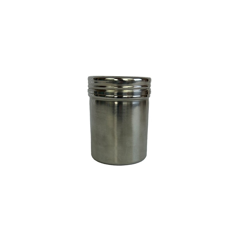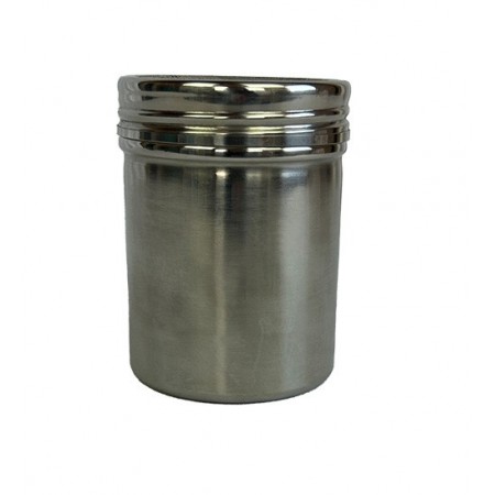 Le récipient est en acier inoxydable et permet de stocker des aliments en poudre sans les altérer.